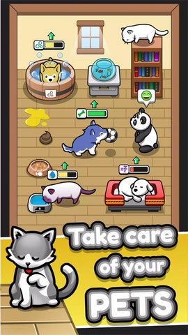 个性化家园建造系统:游戏中的温馨小屋不仅仅是一个背景图,而是一个可自由扩建与装饰的成长家园。您可以利用游戏内获得的资源,购买各式家具、墙纸、地板来打造不同风格的房间。随着宠物数量或等级的提升,还可以解锁新的房间区域,为您和您的宠物家庭提供更广阔、更舒适的生活空间。