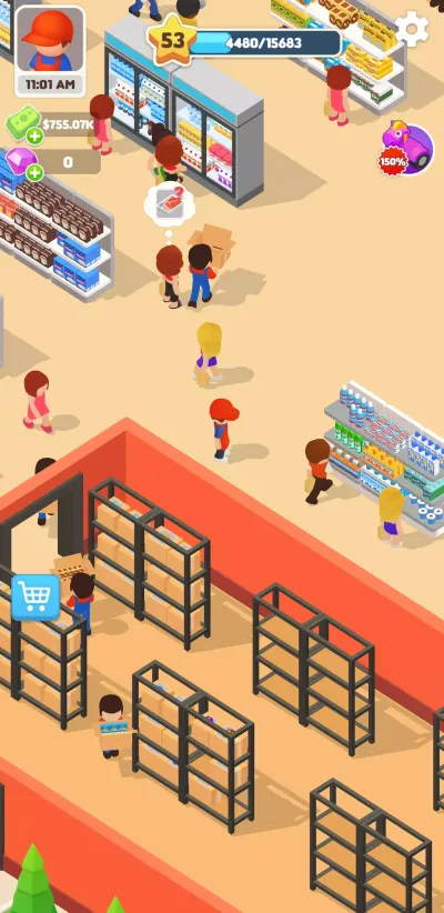 顾客拥有独立的AI行为模式,他们会根据价格、商品摆放和店铺环境做出不同的决策。您会看到顾客在货架前比价犹豫,因为通道拥挤而面露不悦,或因找到心仪促销商品而欣喜。这种动态反馈使得每一次店铺调整的效果都立竿见影,极大地增强了经营的代入感。