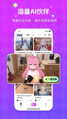 AI对话与关系系统:搭载自然语言处理引擎,虚拟角色能够理解上下文并进行有逻辑、有情感的回复。系统会记录互动历史,模拟好感度与亲密度变化,让角色关系随着交流而动态发展。