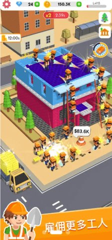 从基础工人到重型机械,再到特殊道具,多种元素可供强化升级,考验着你对资源的统筹安排能力。游戏的经济系统具有策略深度,金币和资源需要在扩大生产规模(雇佣更多工人、开启新项目)与提升生产效率(升级现有工人、购买高级机械)之间做出明智分配,不同的发展路径将带来截然不同的游戏体验。