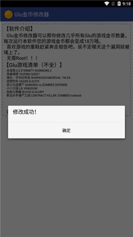 游戏进程智能检测与列表生成:软件启动后,会自动扫描设备中已安装的软件,并从中筛选出所有由glu公司出品的游戏,形成一个清晰的可修改游戏列表。这方便用户快速定位目标游戏,无需手动从众多应用中查找。