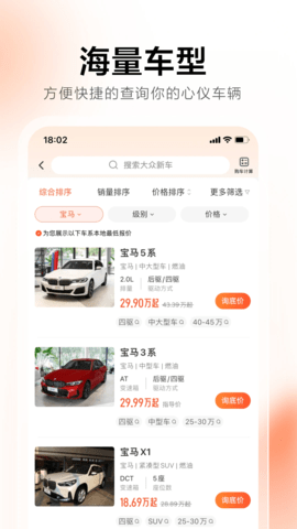 新车报价与优惠询价系统:对于新车购买者,平台提供了不同配置车型的官方指导价与经销商参考价对比。用户可通过询底价功能,一键向多家合作经销商提交需求,从而获取更具竞争力的实际购车优惠方案。