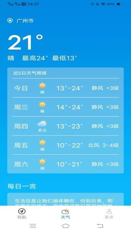 4. 集成气象服务:导航功能与气象信息无缝结合,在规划路线或导航过程中,可直接查看目的地及沿途关键节点的实时天气状况、温度、风速以及短期预报,帮助用户提前做好衣物准备或行程调整,提升出行安全性。