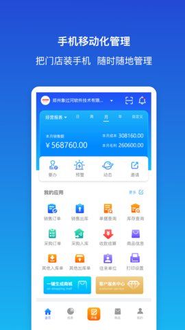 3. 全景式经营数据仪表盘:软件首页设计了一个高度可视化的数据看板,以折线图、柱状图、饼图等形式,动态展示今日、本周、本月的关键绩效指标,如销售额、毛利润、订单数量、库存周转率等。管理者登录后即可一目了然地把握企业实时运营状况,无需从繁杂的报表中手动提取信息。