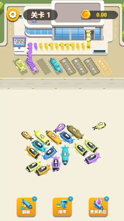基础匹配与路径清除:玩法根植于观察与点击。玩家需在杂乱的车阵中,快速找到颜色匹配的小人与车辆对。点击车辆后,它会沿直线移动直至碰到障碍或其他车辆。核心技巧在于利用车辆移动来为其他目标腾出通道,本质上是在进行一场动态的清道夫工作。