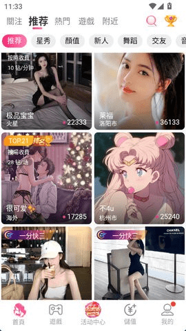 多房间自由切换与分类浏览:用户可以在首页通过上下滑动无缝切换不同的直播房间,预览各直播间内容。顶部设有清晰的内容分类标签(如热门、才艺、聊天、游戏等),方便用户根据个人喜好进行精准筛选,快速定位感兴趣的内容领域。