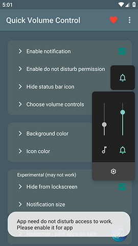 2. 通知栏沉浸式快捷面板:集成在系统通知栏中的可交互控制面板是其一大特色,用户无需进入应用,仅需下拉通知栏即可完成所有音量的查看与调节,甚至执行一键静音,操作路径极短,效率显著提升。