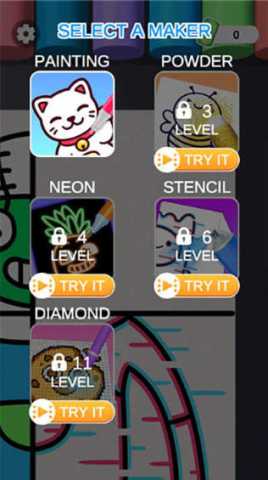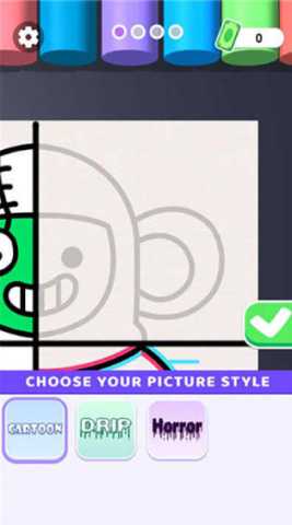游戏内嵌了独特的动态色彩融合技术,使得笔触叠加时能产生自然渐变效果,让数字绘画拥有接近真实水彩的质感。这项技术模拟了颜料在纸上相互渗透的效果,即使是不擅长混色的用户,也能轻松创造出柔和过渡的色彩层次,极大地提升了作品的视觉表现力与艺术感。