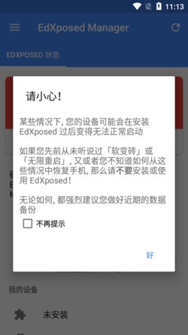 框架与模块状态监控:软件主界面清晰直观地展示了EdXposed框架本身的激活状态,并列出了所有已安装模块的启用情况。用户可以一目了然地掌握整个定制环境的运行健康度。