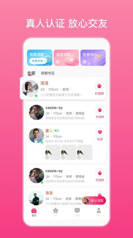 智能速配大厅:这里是妙恋的核心功能区,整合了视频速配与语音速配两种快速通道。用户进入后,系统会根据算法实时推荐可能契合的对象,双方可以选择一键发起视频或语音连线,实现秒级破冰,极大提升了社交效率,让缘分从看见或听见开始。