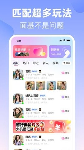 智能附近推荐:深度融合LBS定位技术,首页信息流会智能展示附近的其他用户。用户可以查看距离、最近活跃时间,并自定义筛选条件,如年龄、兴趣爱好等,让寻找有缘人的过程更具目标性和效率。