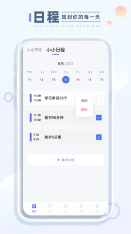 管理你的日程:切换到底部的日程标签页。点击右上角的添加按钮,输入任务描述,并设置好日期、时间。如果需要提醒,可以开启闹钟图标并设置提前提醒的时间。创建好的任务会显示在对应的日期下方,完成后只需点击任务前的圆圈即可勾选完成。