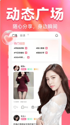 个人动态广场让用户可以像在社交网络一样,发布自己的生活瞬间、心情语录或短视频,通过内容展示吸引志趣相投者的关注与互动,从而建立基于共同话题的社交连接。