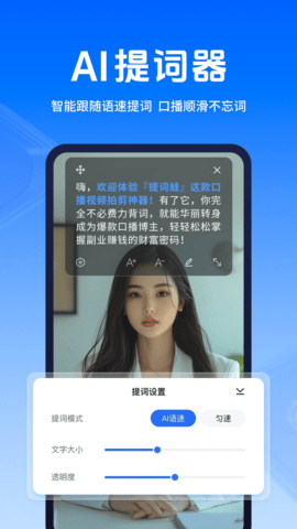 背景透明无级调节:支持对提词板背景透明度进行精细化、无级滑块调节,用户可以根据拍摄背景的复杂程度,将提词板完美融入画面,避免生硬的窗口遮挡破坏视频观感。