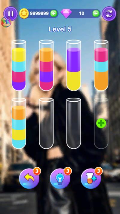 关卡目标驱动玩法:每个关卡都有明确的目标,通常是将指定种类和数量的液体安全导入对应颜色的目标容器中。玩家需要从选择正确的源容器开始,通过拖拽、倾斜或点击操作,控制倾倒的启停与角度,过程中需避免液体洒出容器外造成浪费。
