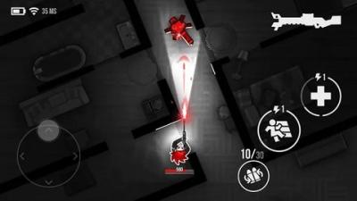 本作构建了一个以黑暗与声音为主导的独特竞技场。游戏采用俯视角操作,左手虚拟摇杆控制角色移动,右手则负责射击、换弹、使用技能等战斗指令。其最引人注目的设定在于战场环境:大部分区域处于不可见的黑暗之中,玩家的视野范围完全依赖于角色手持的手电筒光束。这迫使对战双方从依赖看见转变为依赖听见,枪口的火光会暴露位置,急促的脚步声会预示突袭,任何细微的声响都可能成为决定生死的关键信息。这种玩法机制不仅考验玩家的反应速度和枪法准度,更极大地提升了战术思维与战场感知能力的重要性。玩家需要像真正的特种作战人员一样,在信息受限的条件下,通过分析与推理来掌控战局。