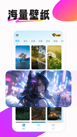 1. 动态视觉交互:软件特别开辟了动态壁纸专区,部分作品不仅具备流畅的动画效果,更能响应设备的陀螺仪或触摸操作,随着手机角度变化而流动的光影,或轻触屏幕时泛起的涟漪,为用户带来超越静态图片的沉浸式互动体验。