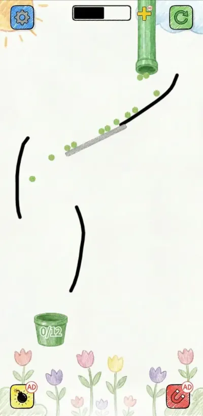 掌握分流与导向技术:面对需要将小球分送至不同颜色杯子的关卡,需要绘制分岔路径。经典的Y形或树杈状分支结构非常有效。关键在于分岔点的位置选择和分支角度的控制,以确保小球能平稳地分流到各自的目标方向。
