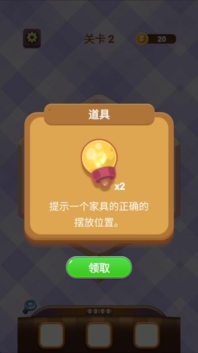 在核心的关卡挑战玩法中,玩家需扮演一名室内空间规划师。进入关卡后,首先需要整体审视房间的布局与风格定位,明确空间的主要功能区域。随后,从提供的家具库中,挑选出在风格、尺码、色彩上与主题最为契合的物品,通过拖拽将其精准放置到最合理的位置。整个过程要求玩家具备良好的空间感知与美学搭配能力,直至所有物品各归其位,方可成功通关。