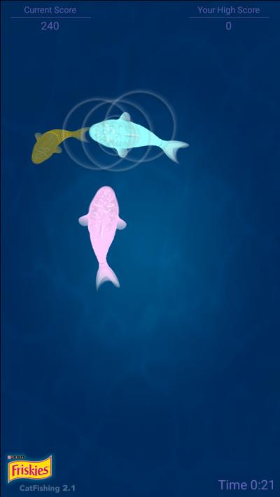 自主互动与难度演进:猫咪开始用爪子拍打、触摸屏幕上的鱼。系统会自动识别有效接触,并给予即时视觉(如水波纹扩散)和听觉反馈。随着猫咪命中率提升,游戏会无缝过渡到更高阶段,鱼群数量增多,移动速度加快,轨迹也更复杂,持续提供匹配其能力的挑战。