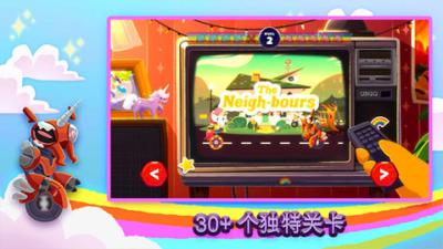 融合平台跳跃元素的赛道:赛道设计超越了传统竞速游戏的直线或弯道概念,巧妙融入了平台跳跃游戏的机关与地形。玩家需要操控独角兽在恰当的时机进行小跳以越过沟壑,利用弹簧板实现大跳跃,或在移动平台上精准着陆。这种设计让竞速过程充满了动作游戏的操控乐趣与空间判断挑战。