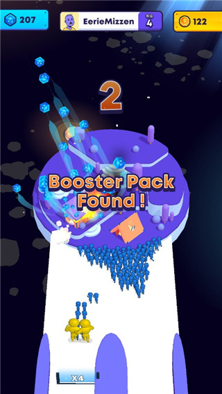 玩法的进阶操作涉及能量管理。在持续发射普通单位时,屏幕下方的能量条会逐渐累积。当能量条充满并变为高亮的黄色时,此时松开手指,大炮将发射出一个威力强大的黄色巨人。该巨人能承受更多伤害,是突破密集防线的利器同样可以穿过算术门来复制自身,形成一支精锐的突击力量。