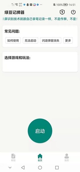 快速启动与适配:下载安装后,用户首先选择自己常玩的主流游戏类型进行基础设置。进入对应的游戏应用并开始牌局后,只需在绿豆记牌器中点击开始按钮,便会自动捕捉游戏画面,并启动记牌流程,整个过程简洁快速。