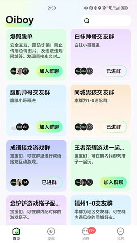 2. 沉浸式虚拟互动空间:oiboy创新性地打造了多种主题的虚拟社交空间,如实时语音聊天室、互动游戏房间和线上观影厅。这些空间并非简单的聊天窗口,而是配备了丰富的互动破冰工具和场景化元素。用户可以在低压力环境下通过共同参与游戏、话题讨论或娱乐活动自然开启对话,有效降低了陌生人社交的初始尴尬感,让关系在轻松有趣的共同体验中快速升温。