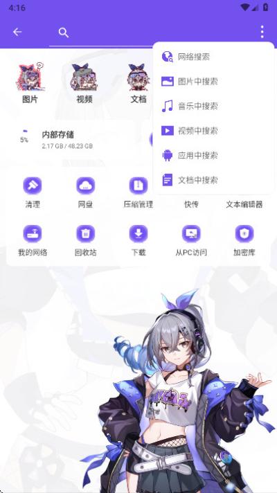 es管理器银狼版是一款基于经典文件管理工具深度定制的风格化软件不仅彻底革新了传统工具枯燥的视觉体验,更将崩坏:星穹铁道中人气角色银狼的赛博朋克美学深度融入操作环境的每个细节。从充满科技感的启动动画到经过全新绘制的功能图标,在完整保留强大核心文件管理能力的移除了所有商业推广内容与不必要的后台服务,使得程序体积更为精炼,运行响应速度得到显著提升。其内部的文件索引与智能检索机制也经过了专业调校,能够更精准、快速地定位用户所需内容,无论是管理本地文档、多媒体文件,还是处理云端数据,都能提供高效流畅的一站式解决方案,成为追求效率与个性化体验用户的得力助手。