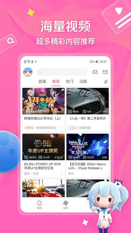 个性化智能推荐引擎:系统会根据用户的观看历史、搜索记录及互动行为(如点赞、收藏),动态分析其兴趣偏好,并在首页推荐栏目中精准推送可能感兴趣的视频内容,帮助用户不断发现新的UP主和优质作品。