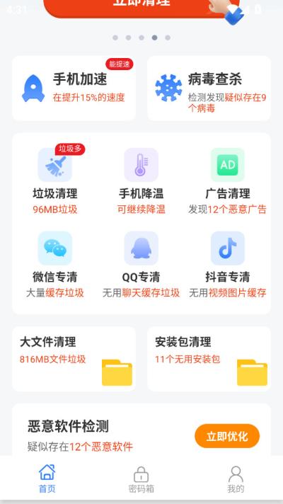 每日清理王是一款专为安卓智能手机设计的全方位系统优化与维护工具,帮助用户解决设备因长期使用而产生的性能下降和存储空间不足等常见问题,通过高效的智能扫描引擎,深度清理应用缓存、残留文件、广告垃圾以及系统冗余数据,从而有效释放存储空间,提升手机运行速度,不仅关注基础的清理功能,还集成了内存加速、电池优化、隐私保护和温度监控等多项实用模块,为用户提供一站式的设备健康管理方案。其界面设计直观,操作流程简洁,即使是初次使用的用户也能轻松上手,是保持手机流畅如新的得力助手。