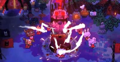 咩咩启示录中文是一款由澳大利亚独立工作室Massive Monster匠心打造、Devolver Digital发行的动作冒险与模拟经营奇妙融合之作。在这款你将扮演一只被献祭却又奇迹般复活的小羊羔,被一位名为待终冠主的神秘存在所救赎,并肩负起建立并壮大一个独特教派的非凡使命。游戏的核心体验在于,你需要穿梭于随机生成的地牢之中,运用各式近战武器、神秘咒术与蕴含力量的塔罗牌,与异教徒展开激烈对抗;你还要在营地中精心规划,建造各类设施,招募并管理你的信徒,通过布道、颁布教条与举办仪式来维系这个小小社群的繁荣与稳定。这种战斗探索与经营建设无缝切换的节奏,创造了一种张弛有度的独特游戏韵律。