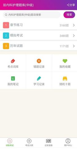 章节精练与快速搜索:软件按照内科护理学的标准体系(如呼吸系统、循环系统、消化系统等疾病护理)划分章节,用户可按顺序或选择薄弱章节进行针对性练习。强大的搜索功能支持通过关键词、疾病名称或症状快速定位相关题目。