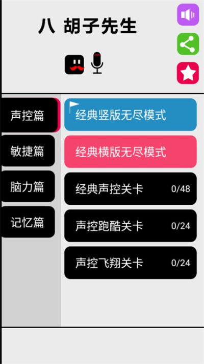 八胡子声控大冒险是一款将声音转化为核心驱动力的平台跳跃游戏彻底颠覆了传统触屏或手柄的操作范式。玩家通过调节自身发声的音量大小与音调高低,来精准操控一位留着标志性八字胡的角色,在各种充满音乐元素的奇幻场景中前进、跳跃与躲避。游戏的核心挑战在于灵活应对从空中随机掉落的骷髅头、地面突然弹出的陷阱以及遵循特定节奏移动的障碍物,并非简单的声控反应测试,而是巧妙地将音乐理论中的节拍、音高与游戏关卡设计深度融合,创造出一种需要玩家用歌唱或呼喊来解谜的全新互动体验。从训练基础肺活量与发声稳定性的入门关卡,到需要复杂声音组合指令才能激活隐藏路径的进阶挑战,游戏过程本身就是一场对玩家声音控制力与节奏感的趣味训练,呈现出一场妙趣横生且极具个人特色的声控冒险之旅。