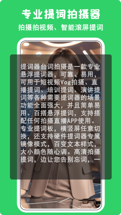 免费提词器是一款专业的提词工具,满足直播、视频拍摄、演讲及内容创作等多种场景下的口播需求,支持在手机、平板和电脑等多平台上灵活运行,实现了跨设备的无缝体验。其核心功能包括直播题词、可自定义的滚动字幕以及独特的逆向提词模式,能够帮助主播、教育工作者、企业发言人及自媒体创作者摆脱记忆负担,显著提升表达的流畅度、准确性和专业表现力,设计注重实用性与效率,不仅简化了内容准备流程,还通过智能化的交互设计,让用户能够专注于内容本身,从而在镜头前或听众面前更加自信、从容地传递信息,是提升个人与团队内容产出质量的得力助手。