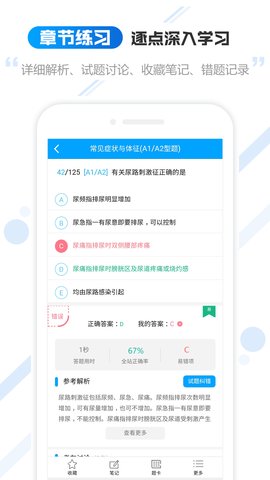 2. 学习模式灵活自适应:软件支持章节练习、题型突破、模拟考试、错题重练等多种模式,用户可根据自身复习阶段自由切换。所有学习资料支持离线下载,完美适配医护人员不规律的工作和休息时间,实现随时随地学习。