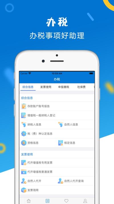 1. 业务办理无纸化与全流程覆盖:软件实现了从税务信息确认到税款缴纳、从发票申领到证明开具的完整业务链条线上化,纳税人无需准备纸质材料或前往办税大厅,即可在移动端完成绝大多数涉税事项,彻底告别了来回跑、排队等的传统办税模式。