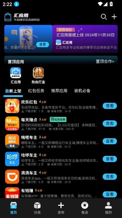 汇应用是一款连接应用开发者与普通用户的创新型激励平台,将应用推广转化为用户可参与的任务体系,为用户提供通过下载、体验各类应用来获取实际收益的创新模式,整合了市场上众多新兴应用与游戏的推广需求,构建了一个清晰、透明且即时奖励的生态,让用户在探索有趣应用的能够轻松赚取积分或现金回报。平台通过精心设计的任务大厅、多样化的悬赏类型以及便捷的提现流程,不仅降低了用户参与门槛,更实现了应用发现与零花赚取的双重价值,成为移动端一种兼具趣味性与实用性的收益方式。