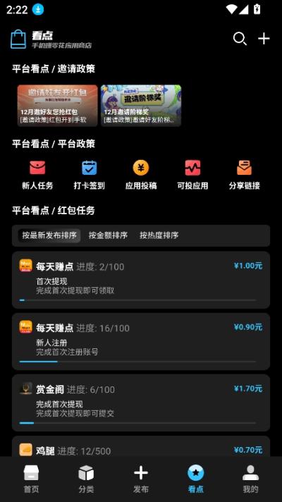 1. 拥有海量且持续更新的应用任务库,覆盖工具、娱乐、游戏、金融等多个类别,确保用户始终有丰富的新任务可供选择,避免了任务荒。