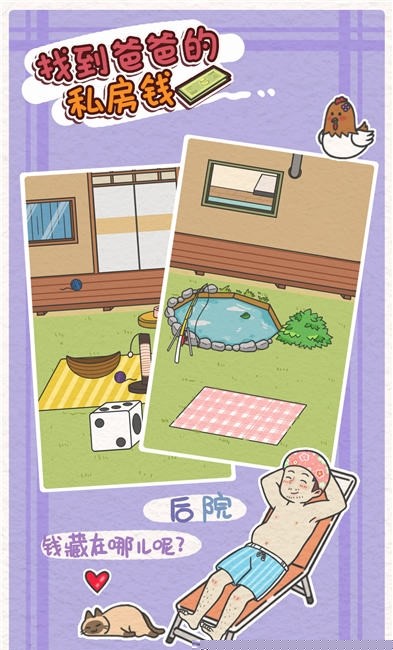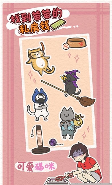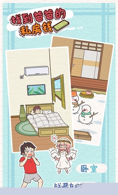 找到爸爸的私房钱是一款以家庭空间为舞台的沉浸式探索解谜游戏,将日常生活场景转化为充满巧思的谜题空间,引导玩家扮演一位敏锐的家庭侦探,在看似寻常的客厅、书房、卧室乃至车库中,展开一场充满惊喜与挑战的搜寻之旅。游戏的核心魅力在于将琐碎的家庭物件与精妙的机关设计相结合,每一处褶皱、每一道缝隙都可能成为揭开秘密的钥匙,不仅仅考验玩家的观察力,更鼓励一种结合逻辑推理、环境互动与道具运用的综合性思维,在一次次恍然大悟的瞬间,收获独特的成就感与诙谐的家庭生活趣味。