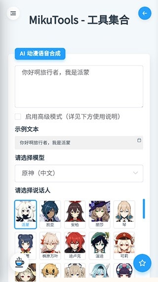具备角色语音模型的快速检索与选择界面,用户可以按角色名称、所属地区或元素属性进行筛选,迅速定位到想要使用的声库。