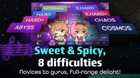 游戏的视听呈现具有强烈的未来科技美感。角色与场景设计充满星际旅行与机械文明的幻想元素,演奏界面中的动态背景与绚烂的光影粒子特效并非静态展示,而是会精确地跟随当前播放音乐的旋律与节拍产生同步律动,将听觉感受转化为视觉上的震撼冲击。
