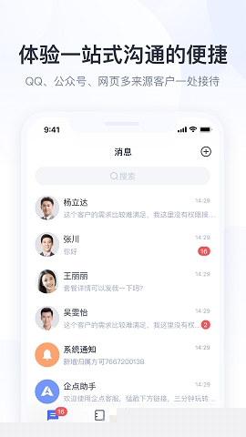 1. 全渠道客户连接与统一入口:企业QQ实现了与腾讯QQ、微信公众号及QQ公众号等多个主流社交平台的深度打通,为企业构建了一个统一的客户沟通入口。无论客户来自哪个渠道,其咨询信息都能汇聚到同一平台进行处理,避免了多平台切换的繁琐,确保了客户体验的一致性与响应的及时性。