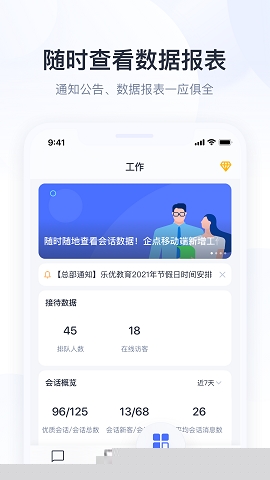 营销推广与数据分析:提供从活动策划、素材制作、多渠道投放到效果追踪的完整营销链路工具。内置多维数据看板,可直观分析客户增长趋势、会话量、客服响应时长、营销活动转化率等关键指标,帮助企业用数据驱动运营决策的优化。