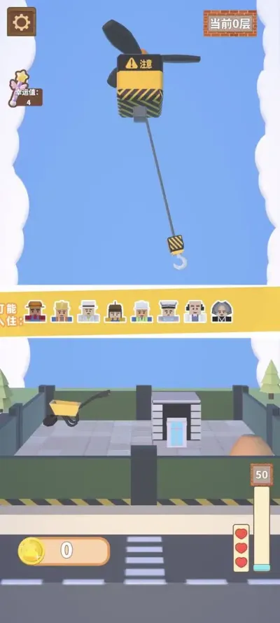 核心建造玩法要求玩家通过触屏控制塔吊,抓取空中或平台上的楼块,并将其搬运至正在施工的建筑顶端进行堆叠。操作分为抓取、移动、微调与释放几个步骤,关键在于在楼块摇摆过程中,判断最佳释放时机,确保落点尽可能位于下方楼块的中心区域,以维持建筑垂直稳定。