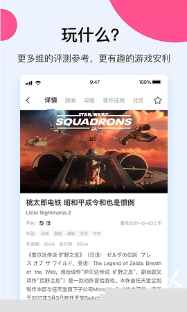 游戏库与信息查询功能。用户可以通过搜索或浏览,访问庞大的游戏数据库,查看任意游戏的详细介绍、媒体评分、发售日期、视频预告以及由社区产出的图文评测,为游戏选购提供全面参考。