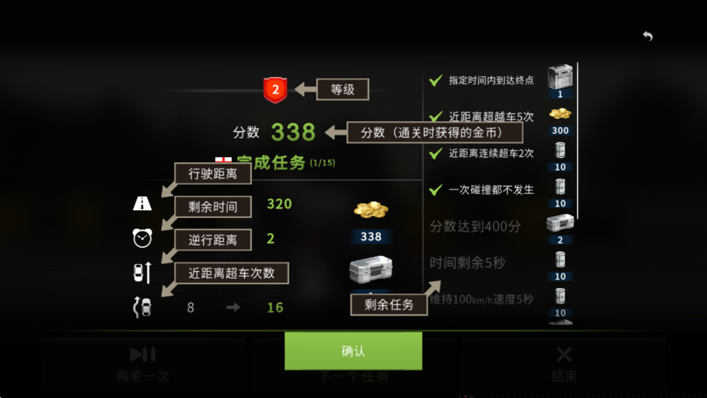 风险与奖励并行的积分机制:游戏鼓励富有技巧性的激进驾驶。成功实施极近距离的超车、在车流中维持长时间的高速滑行、完成完美的漂移过弯等操作,都会获得额外的积分奖励。这套机制将街头驾驶的冒险精神量化,激励玩家在控制风险的前提下追求更华丽、更高效的驾驶风格。