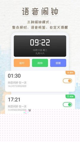 2. 交互逻辑的包容性与个性化:软件在交互设计上展现出高度的包容性,既支持先进的语音指令控制(如设置明早七点的闹钟),也提供了普通话、粤语、四川话等多种方言的报时选项。用户可自由选择系统铃声、本地音乐甚至亲自录制的声音作为闹铃,满足深层情感化需求。