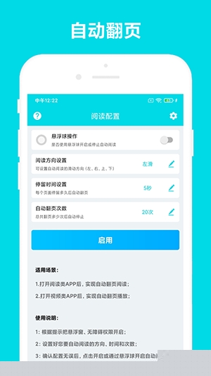 阅读方向与速度调节:支持垂直(上下滑动)和水平(左右滑动)两种阅读翻页方向,以适应不同应用的布局。用户可无级调节翻页间隔速度,从快速浏览到慢速细读,满足多样化的阅读节奏需求。