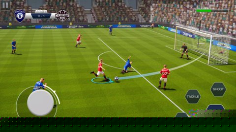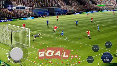 定位球战术设计精妙。发角球时,玩家可以通过在屏幕上滑动绘制预设轨迹,来执行复杂的战术角球配合,通过一次短传配合后突然起高球,精准找到埋伏在后点的前锋,创造头球破门良机。
